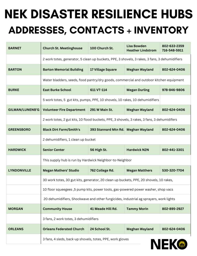 Thank you again for the rapid mobilization and outpouring of care that comes so easily to the people of the NEK.